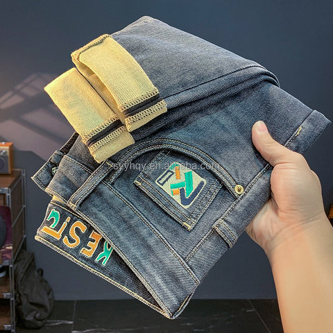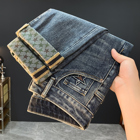 Pantalones vaqueros de talle alto para hombre de venta directa del fabricante, pantalones casuales elásticos, pantalones vaqueros de talla mediana para Otoño/Invierno, ajuste holgado de negocios